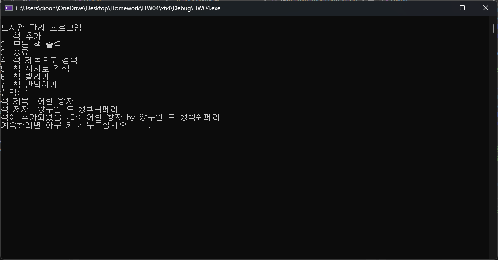 cout << "4. 책 제목으로 검색" << '\n'; //책 제목으로 검색